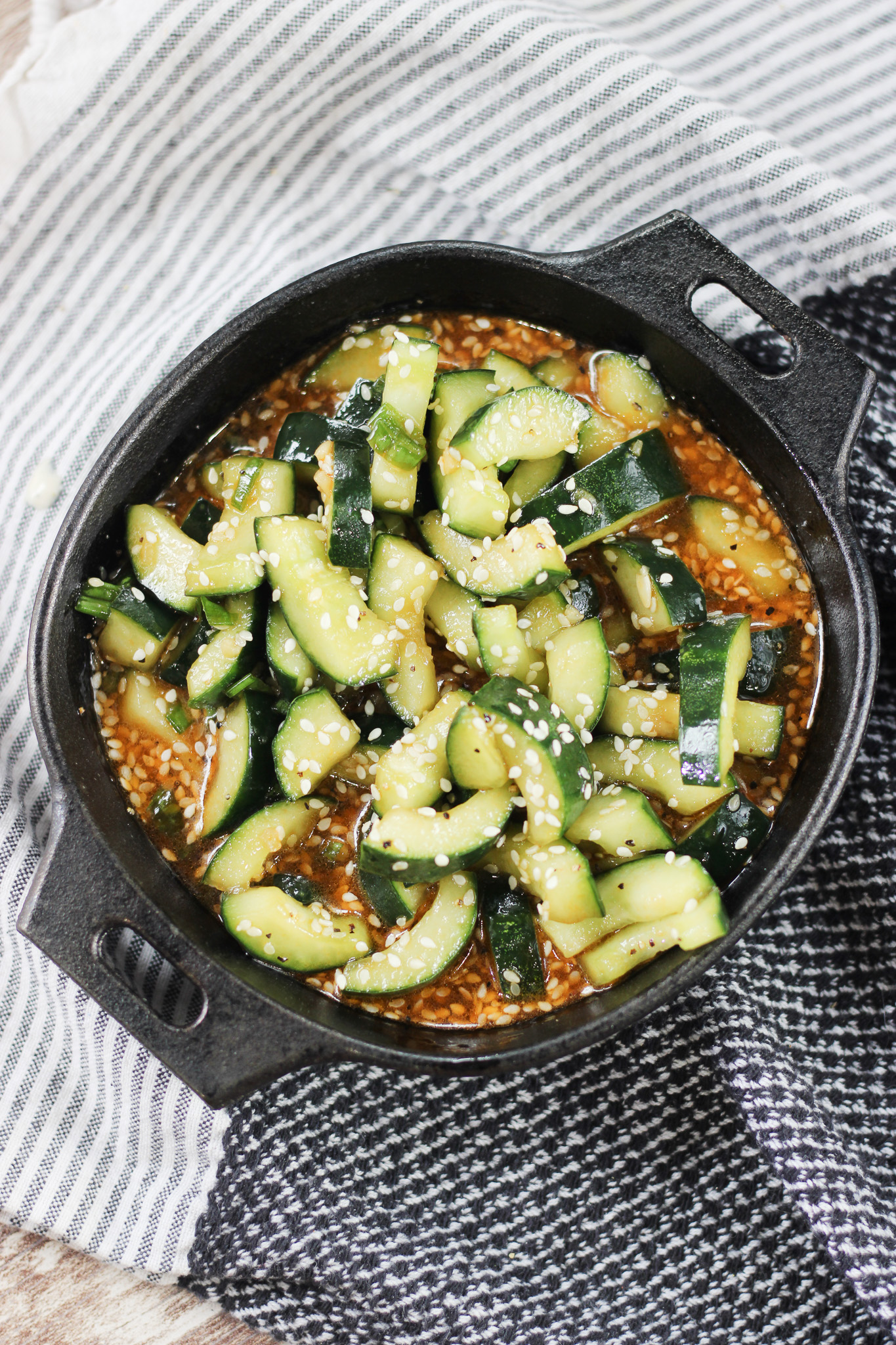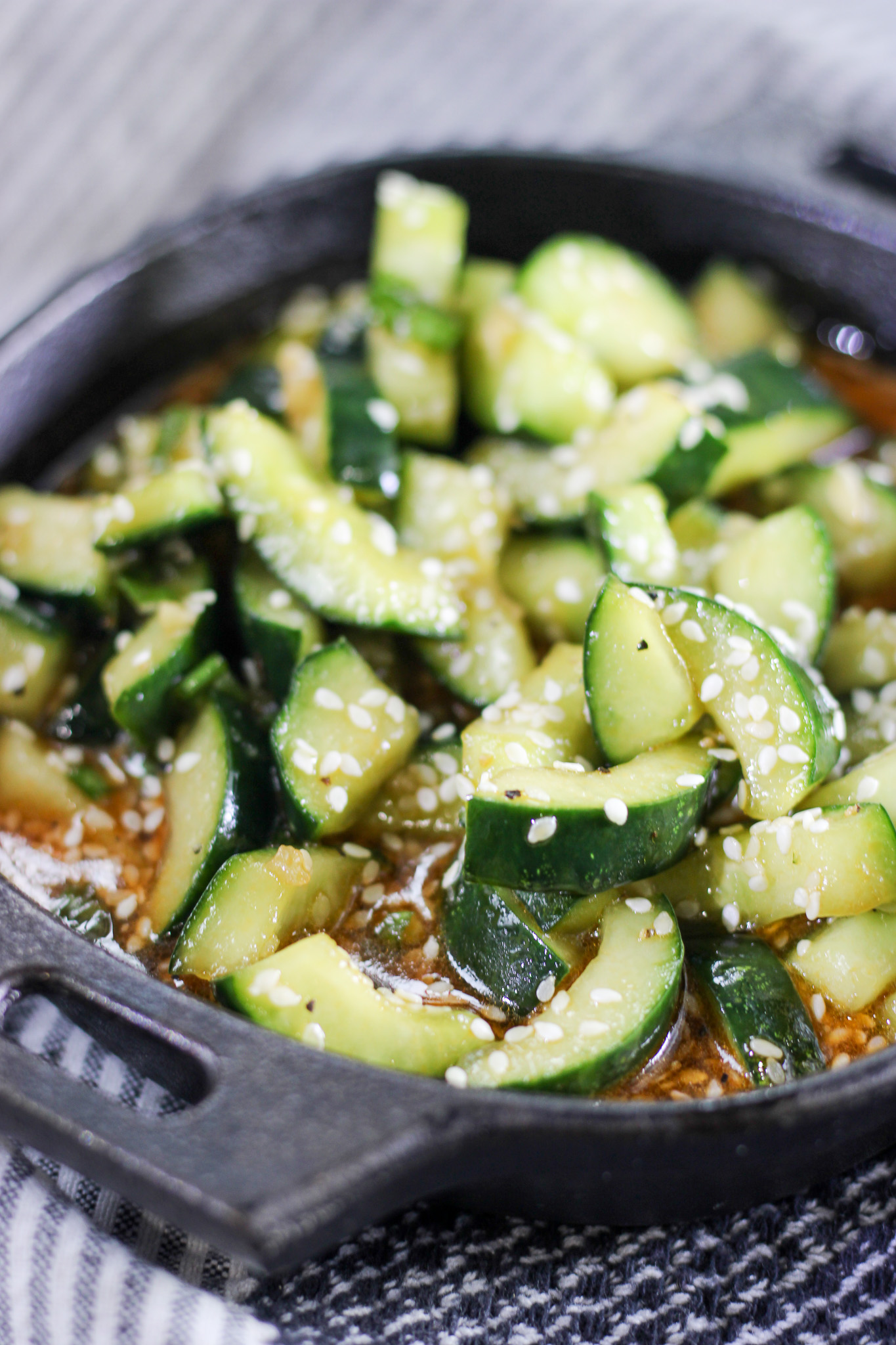 Crisp, tangy Asian Cucumber Salad made with fresh cucumbers, sesame, soy sauce, and garlic. A quick and refreshing side dish ready in minutes.