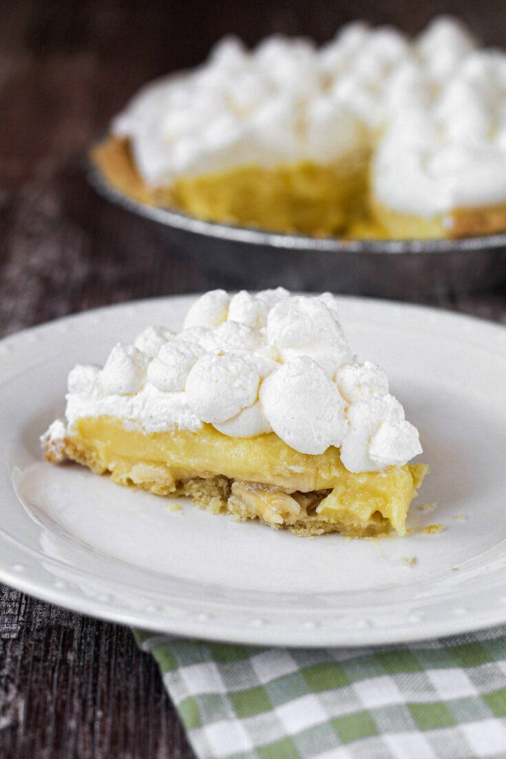 This pie recipe features homemade custard, fresh sliced bananas, and homemade whipped cream, which are layered to create this delicious old-fashioned banana cream pie from scratch.