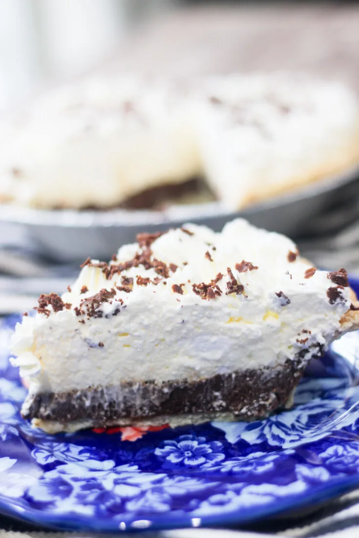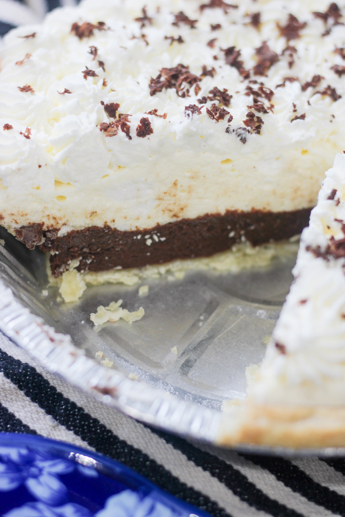 A crisp pie crust holds layers of silky chocolate custard, smooth vanilla custard, and a cloud of whipped cream on top. Every bite is nostalgic, indulgent, and surprisingly light despite its rich flavors.