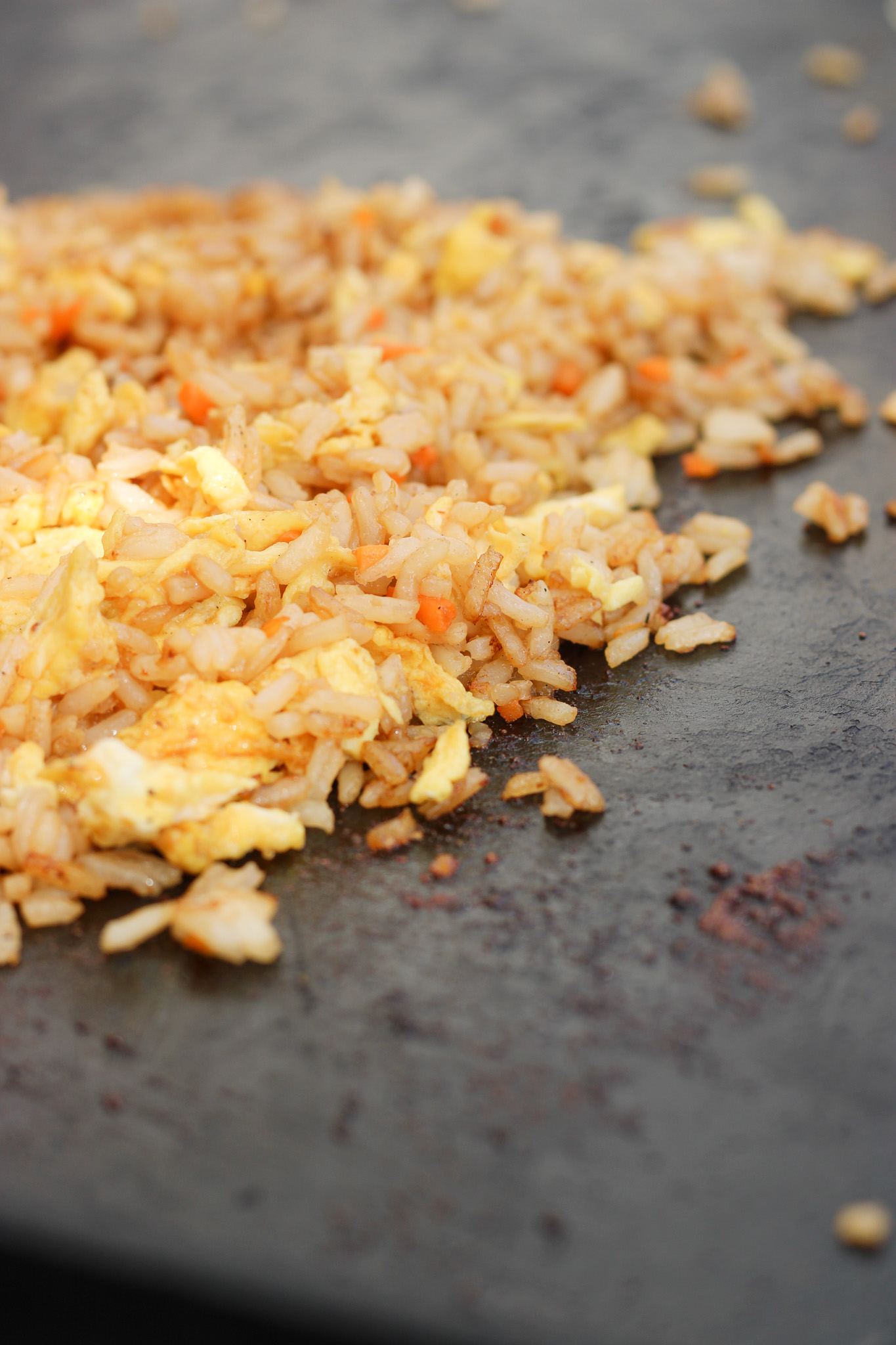 Skip takeout—this is just as good! Fried rice on the blackstone is simple one of the most amazing things you have ever tasted. My favorite part is just how toasted the rice gets.