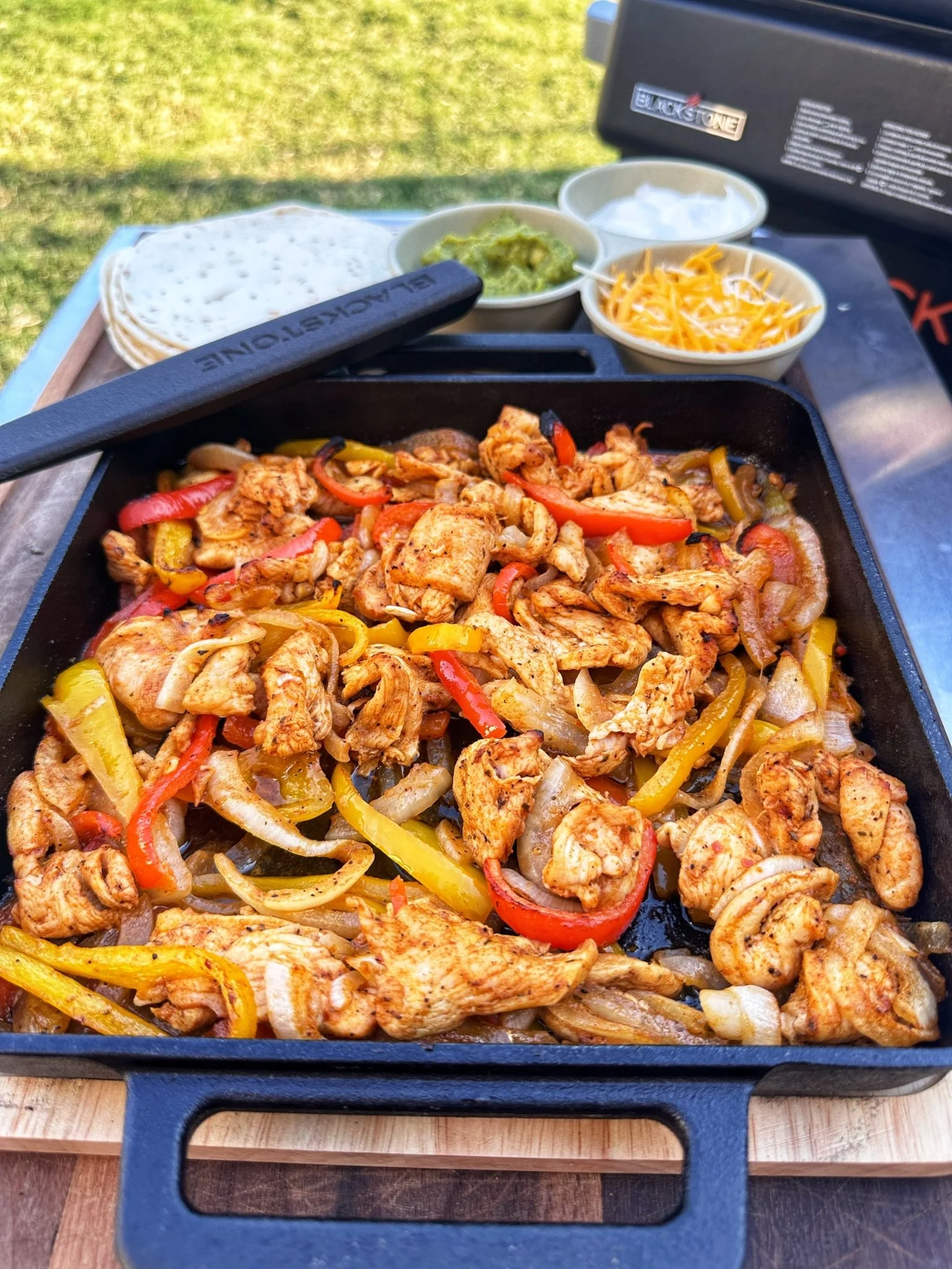 A quick dinner packed with bold flavor. In my list of Blackstone griddle recipes for beginners, these fajitas rank right up there as one of the simplest and easiest. I call them Chicken tacos, but once you add onions and peppers and take away the tortilla, you definitely have fajitas.