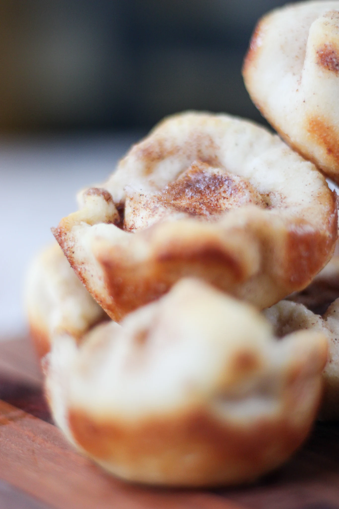 Cinnamon, butter, sugar, and cream cheese inside a flaky biscuit make for the perfect dessert.