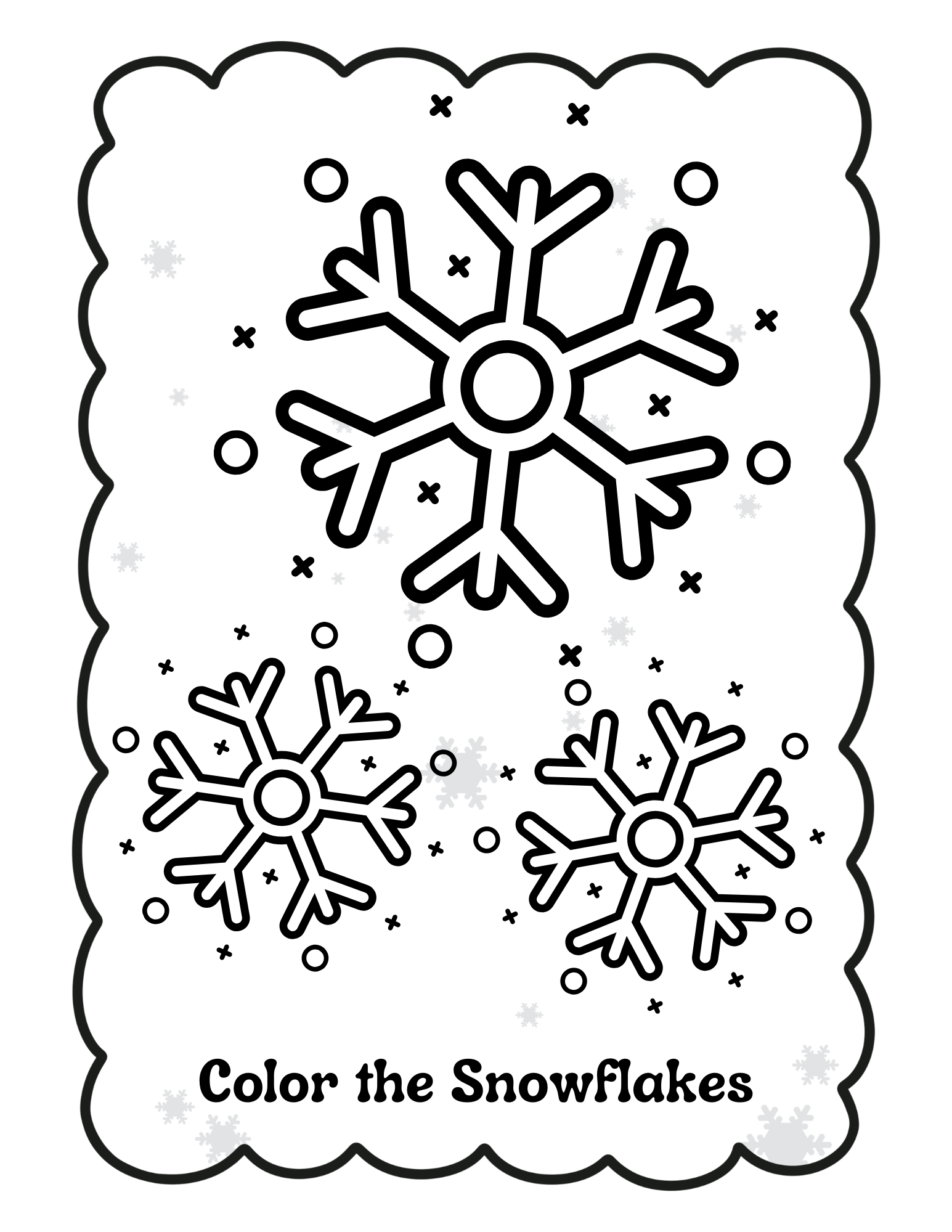 Simple coloring pages are always a hit with toddlers, and this Color the Snowflakes page is no exception. It encourages: