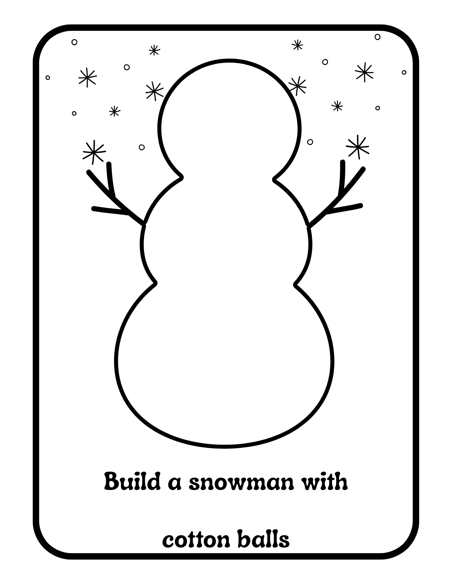 Kids can fill in the snowman using cotton balls, turning this worksheet into a fun sensory activity they’ll love.