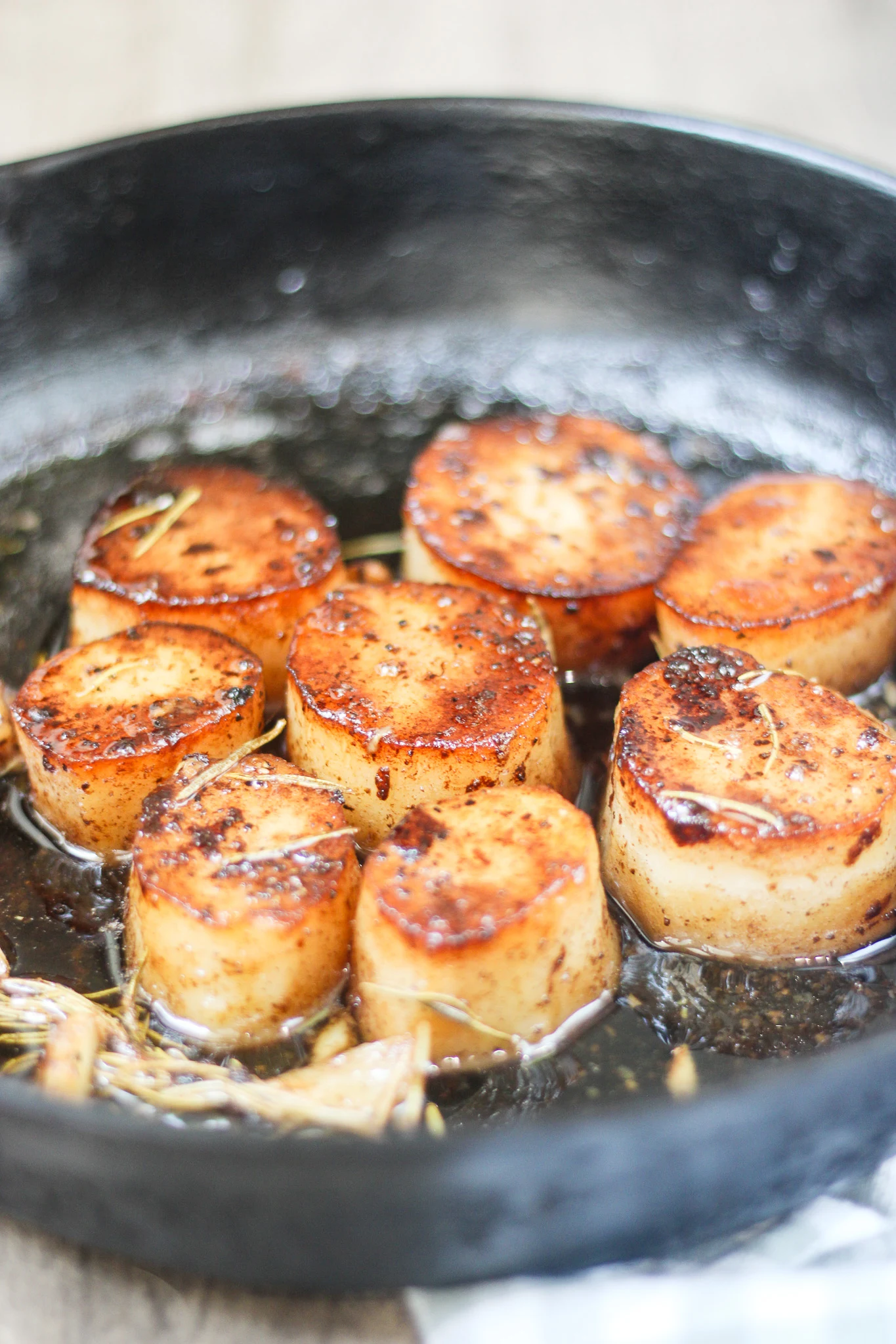 Reduce heat to medium. Add remaining butter, garlic, and Rosemary to the skillet. Let the butter melt and foam, spooning it over the potatoes for extra flavor.