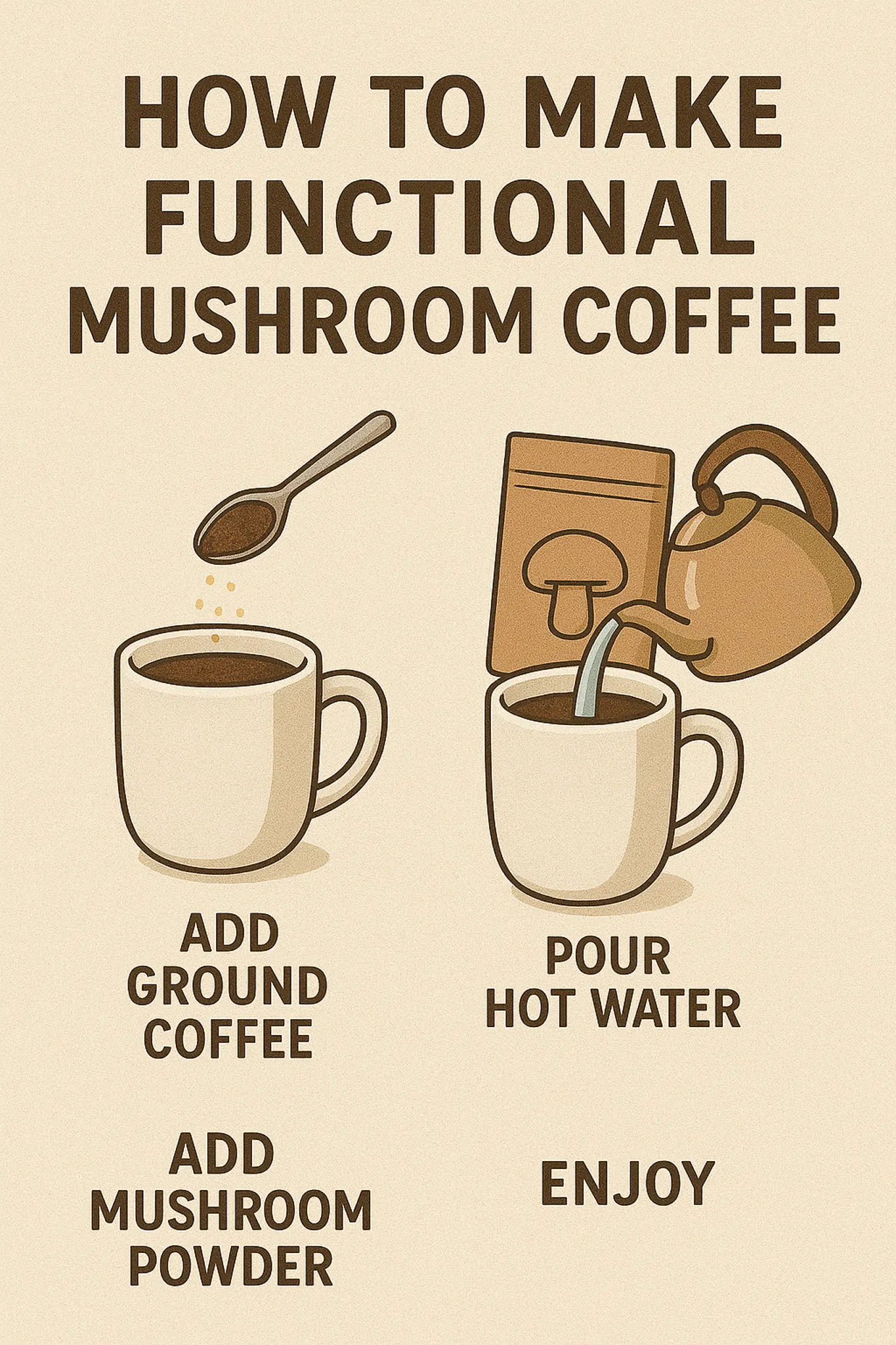 Learn how to make functional mushroom coffee at home with this complete recipe guide. Includes mushroom types, brewing tips, and health benefits.