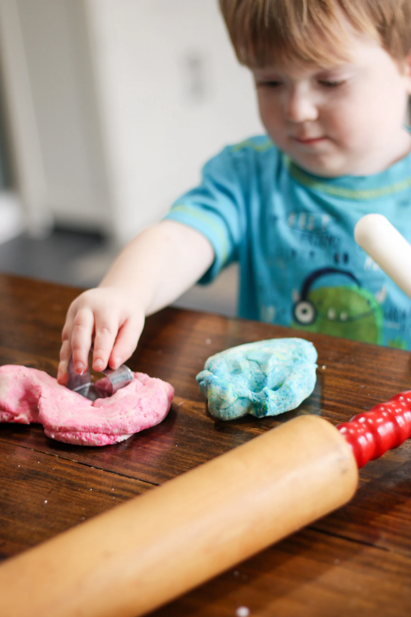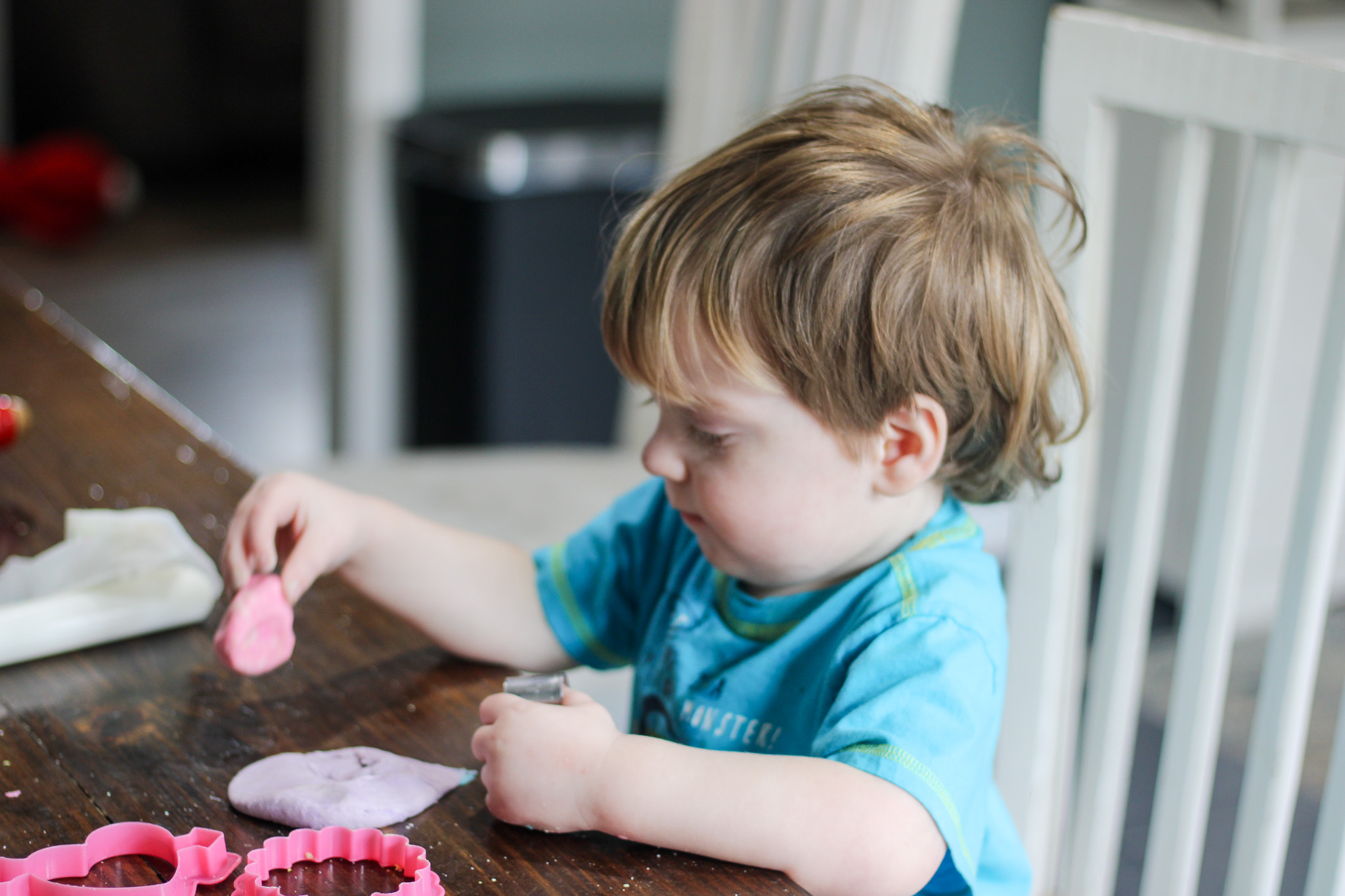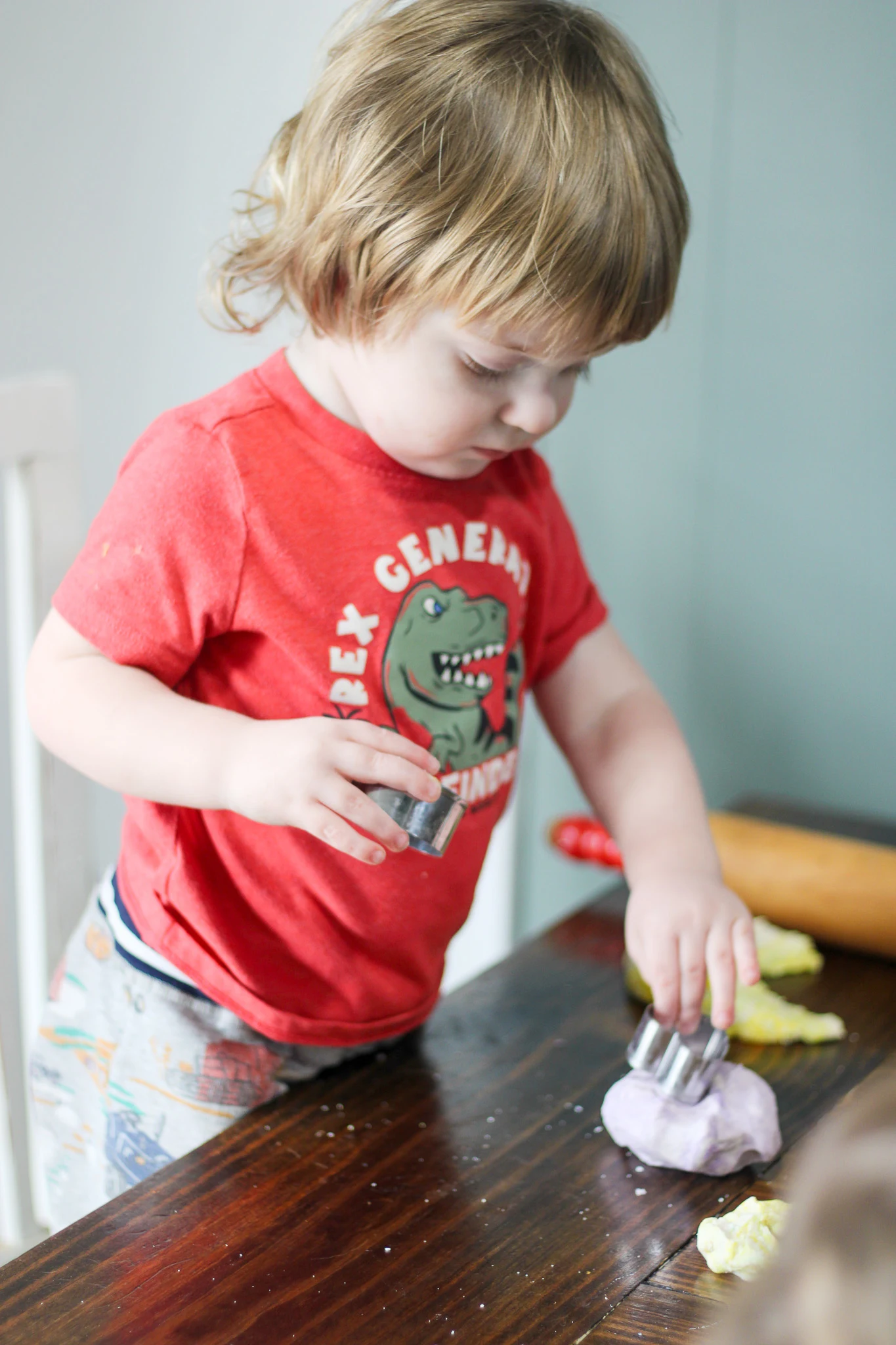 Set out a rolling pin, a few cookie cutters, and let your toddler explore. You might just find yourself sitting down and playing right alongside them.