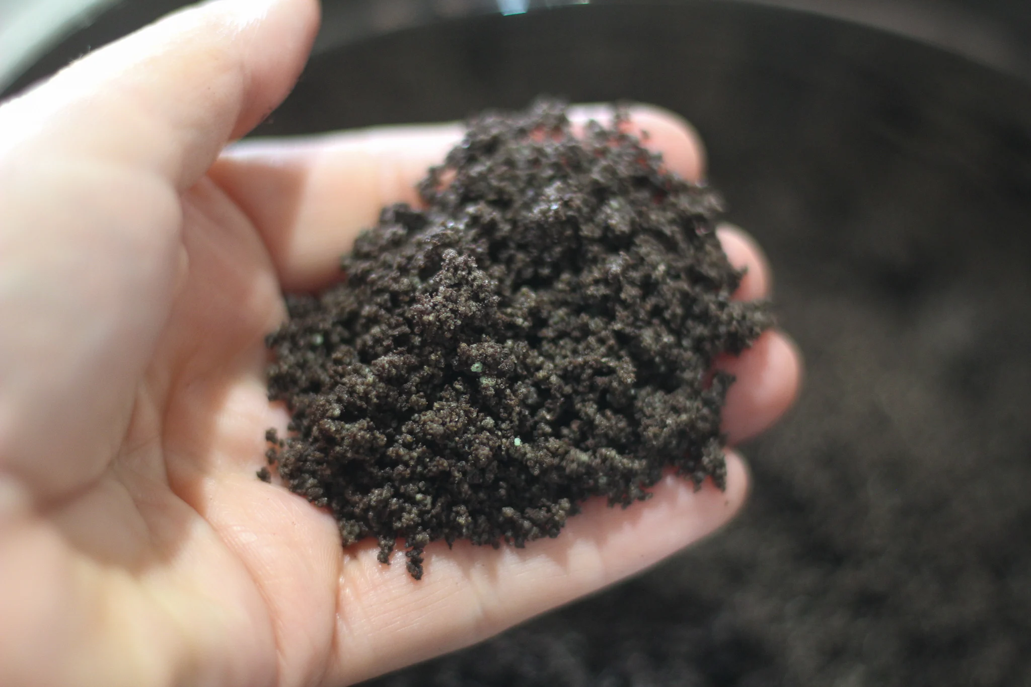 Using your little Ninja food chopper, make sure and grind all your whole package of Oreos to a pulp! You want coarse little crumbs that look like this —