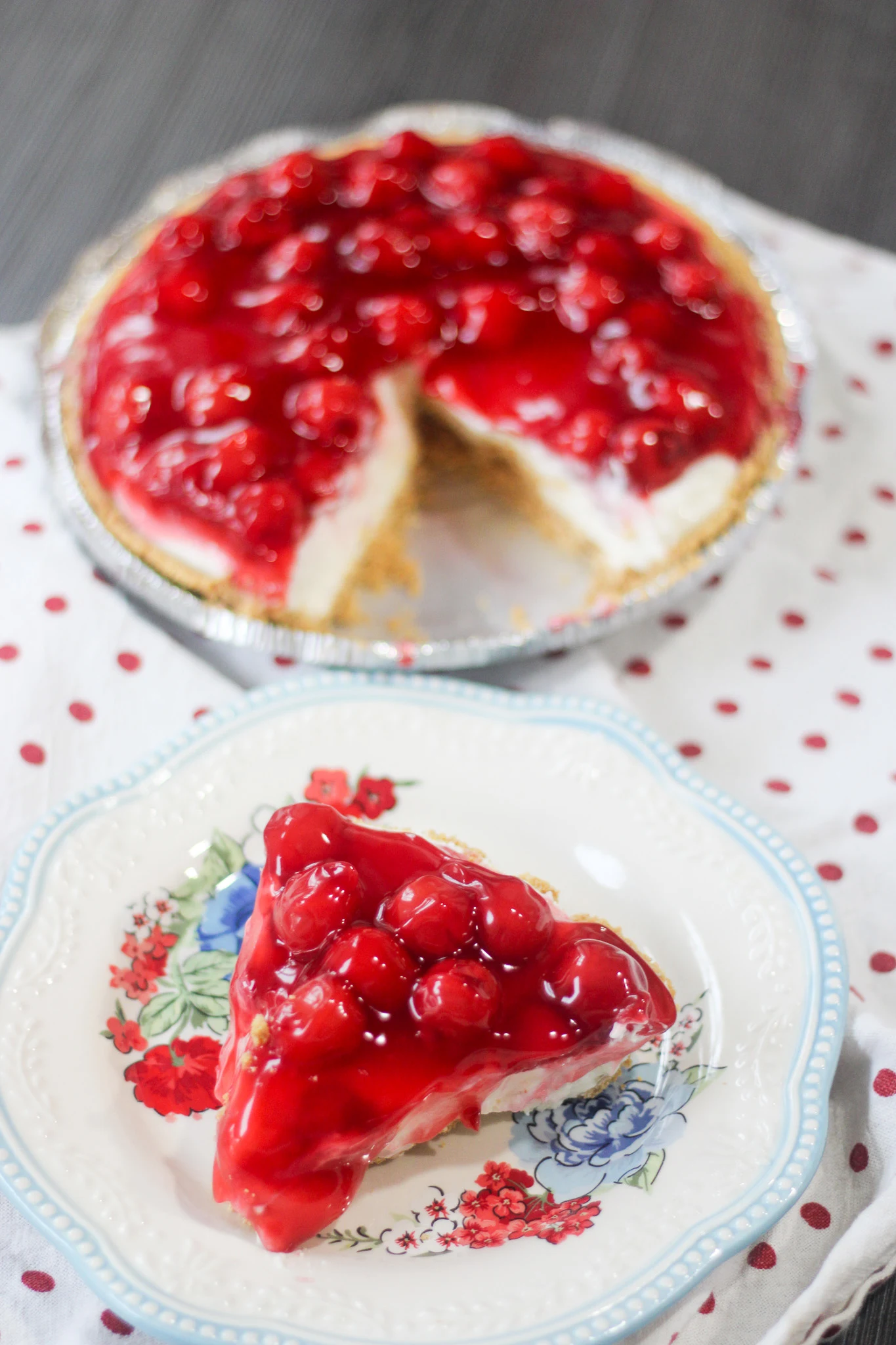 This old fashioned cherry cheesecake is a great holiday dessert. It's a no bake dessert making it simple to make and bring to a holiday get together.