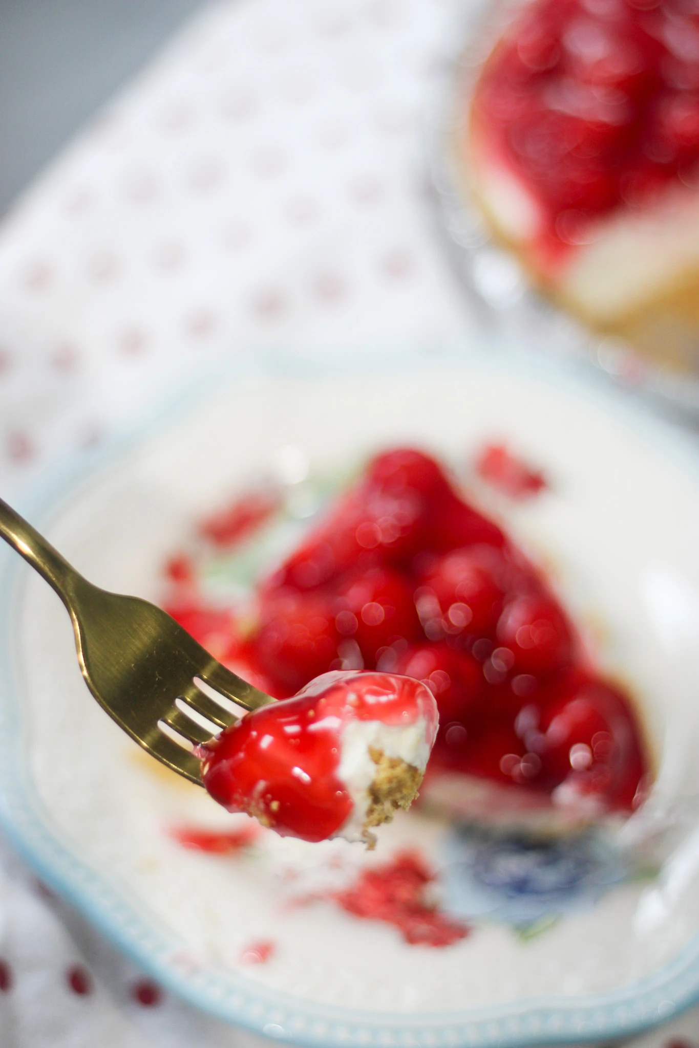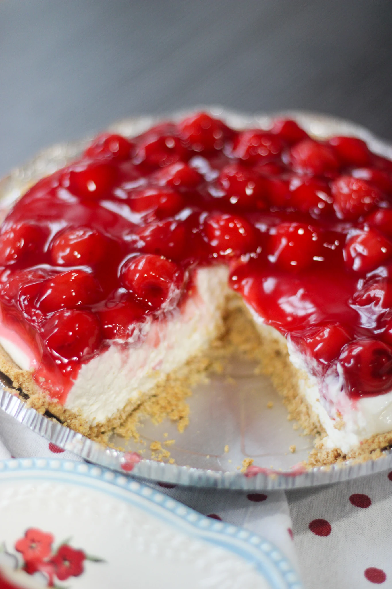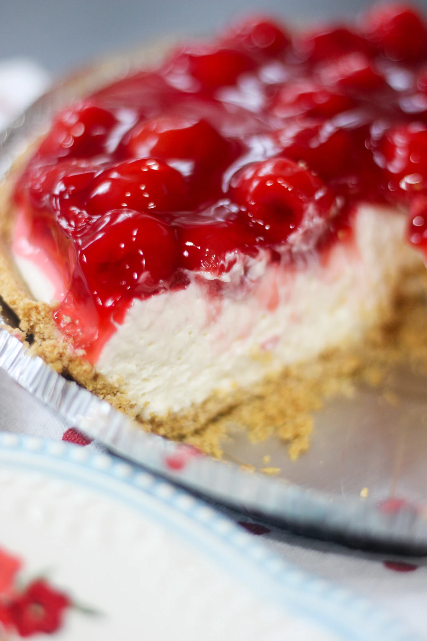 There is just something about fresh cherries on this cheesecake that makes it so delicious.