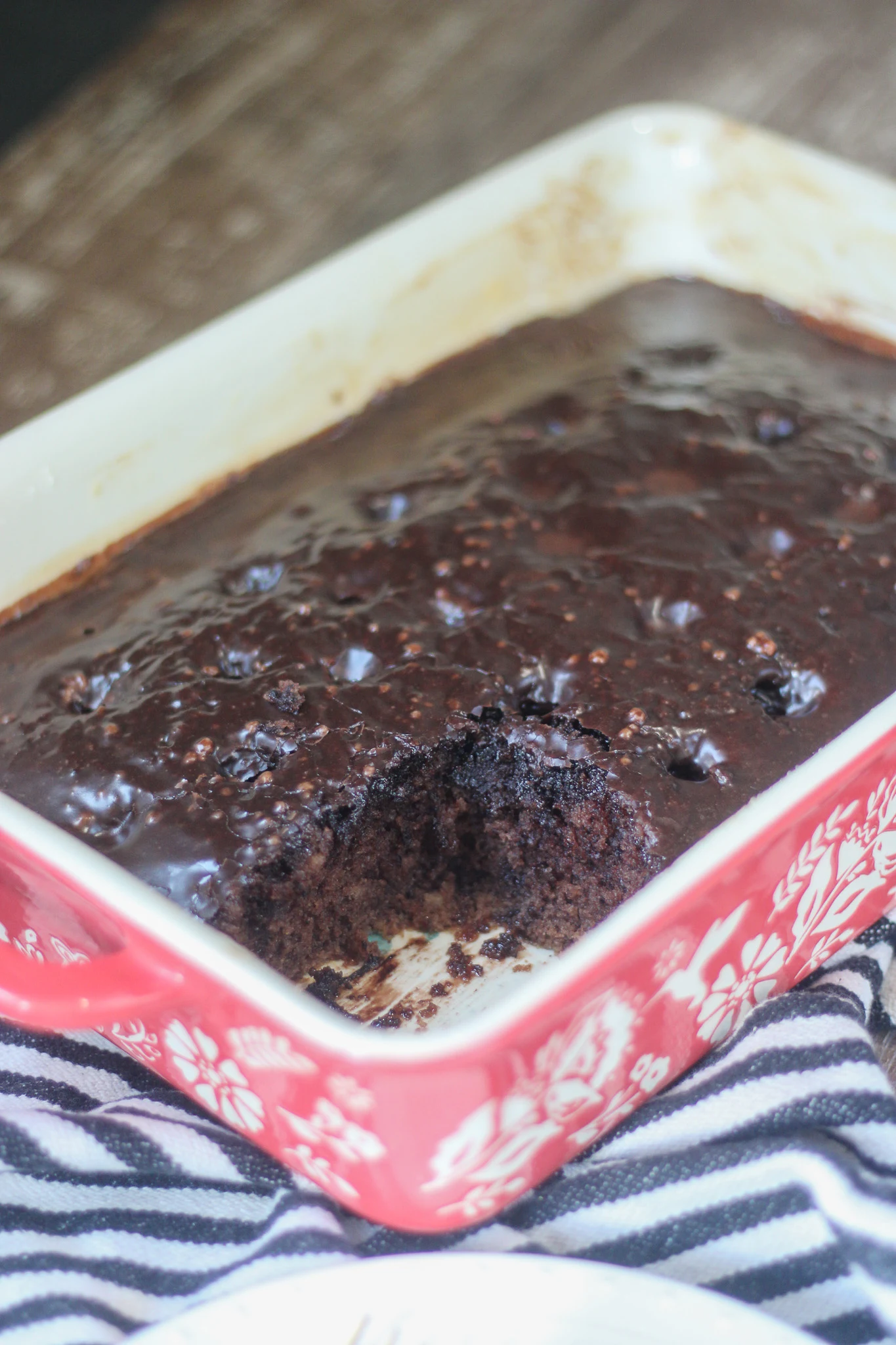 - Pour batter into prepared pan. Bake for 30 minutes or until a wooden pick inserted in the center comes out clean. Punch holes in cake with a fork or an ice pick. Pour chocolate icing over hot cake. Cool completely on a wire rack.