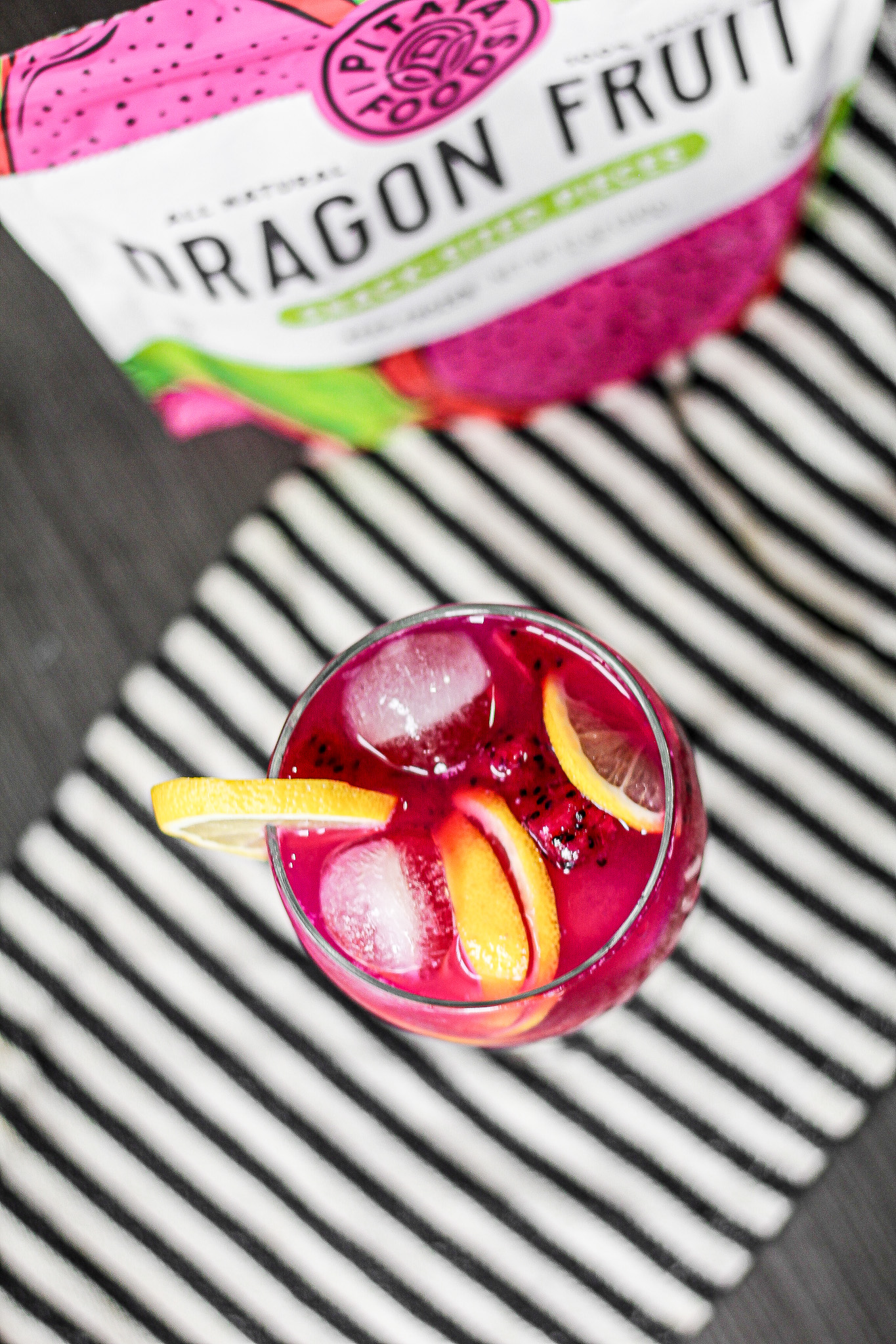 The bright pink color comes naturally from dragonfruit, making this drink both eye-catching and delicious.