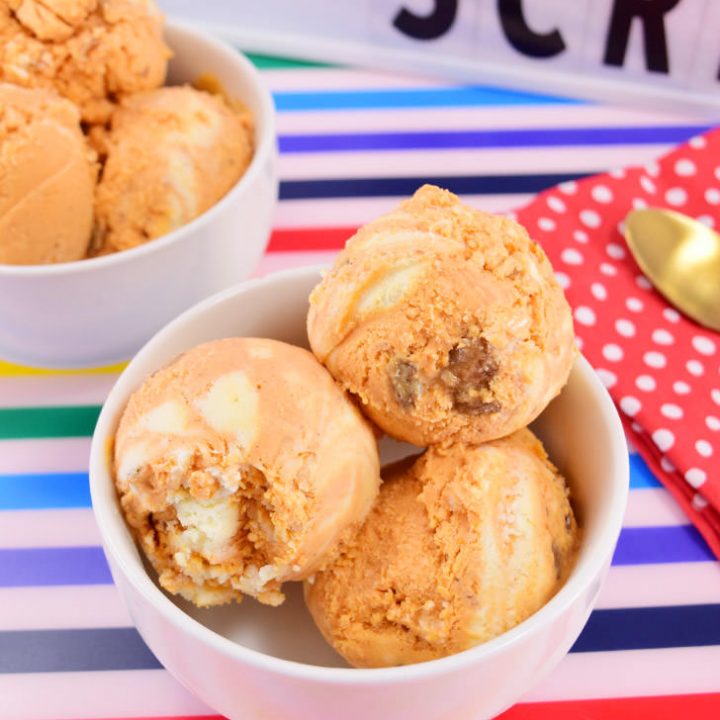 Pumpkin Ice Cream with Cream Cheese Swirl and Praline Pecans