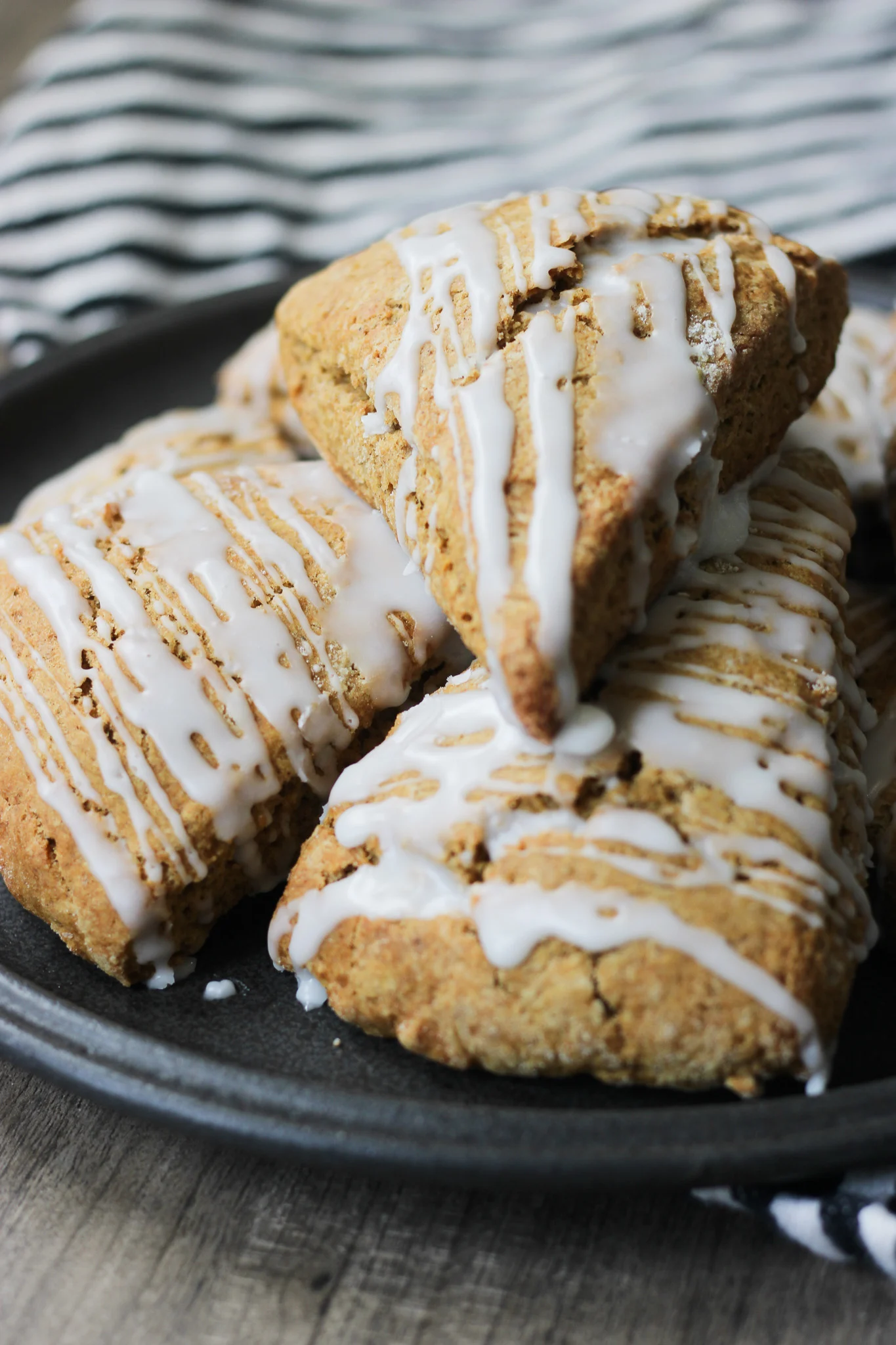 Pumpkin scones are easy to make and super delicious. Covered in a glaze with a deep pumpkin flavor.