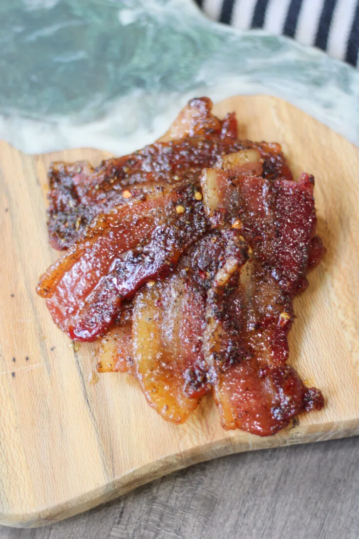 - Go Thick – Thin bacon will burn before the sugar caramelizes.