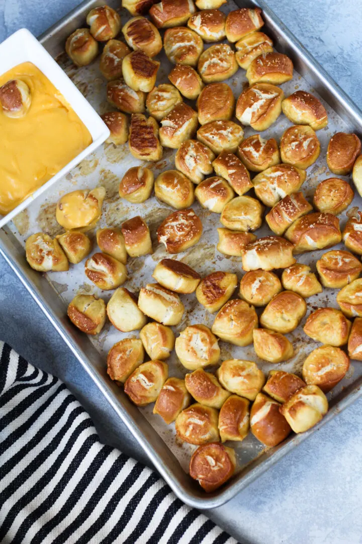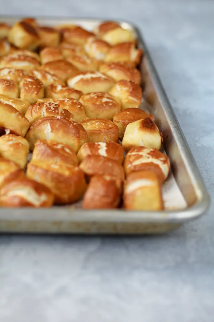 Brush again with a little melted butter if you’d like that classic pretzel sheen. Serve warm with cheese sauce, mustard, or even cinnamon sugar for a sweet twist!