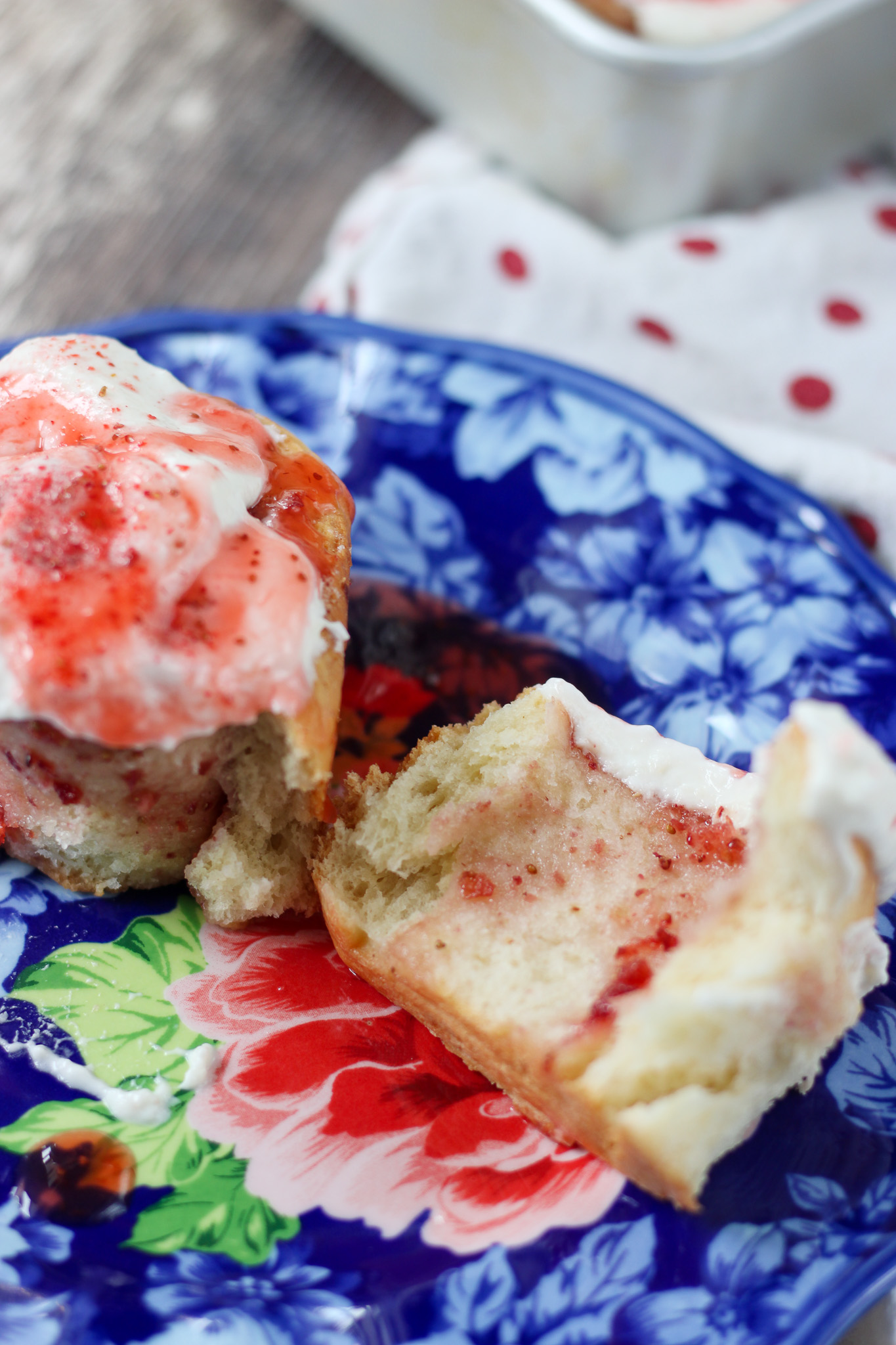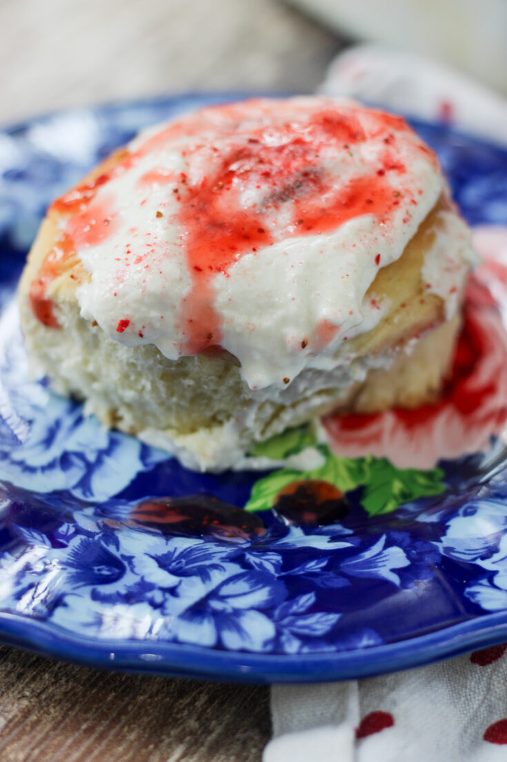 Imagine pillowy homemade rolls swirled with sweet strawberry jam, fresh strawberries, and cheesecake flavor, then topped with a rich cream cheese frosting and finished with crushed freeze-dried strawberries.