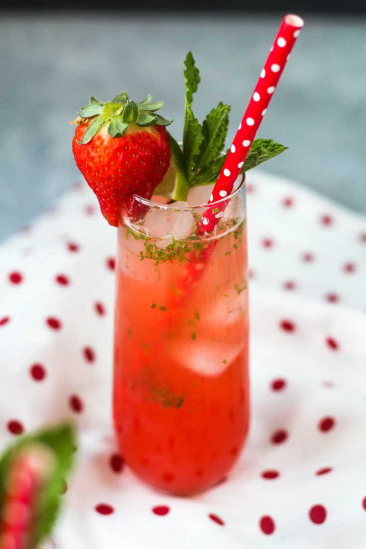 The perfect non-alcoholic Valentine drink. Lime infused with a hint of mint and lots of strawberry flavor.