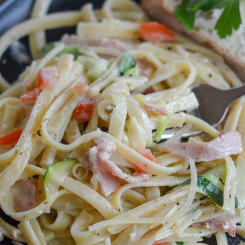 One comfort food that can be made multiple ways is the good ole’ fettuccine alfredo. Likely, you’ve tried it with chicken and, perhaps, shrimp. But have you ever had fettuccine alfredo with ham? Ham pasta is a nice twist on the standard chicken or beef pasta.