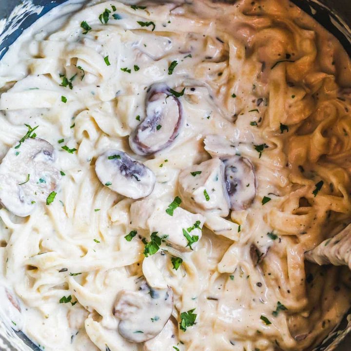 Some of my favorite chicken recipes are those that you can begin cooking earlier in the day, throw into the crockpot, come home to finish up, and serve for dinner. That’s exactly what you can do with this chicken alfredo recipe!