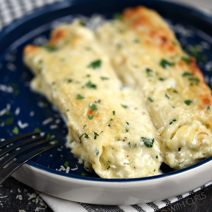 Are you ever looking for new and creative ways to use Alfredo Sauce? Tossing with your favorite pasta is an obvious choice, but not much of a recipe. That is where this amazing Chicken Alfredo Stuffed Manicotti comes into play.