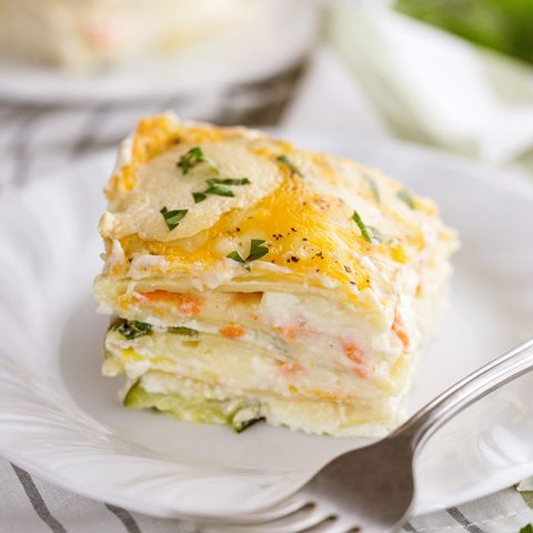 This vegetable lasagna with white alfredo sauce is easy yet so good! With layers of vegetables, cheese, and noodles, there’s a lot to love.
