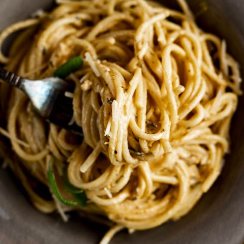 This creamy, dreamy Pumpkin Spaghetti Alfredo recipe is the ultimate Fall comfort food. With fresh pumpkin puree, cream, sage, wine, and spices, this pumpkin pasta is on the table in under 20 minutes!